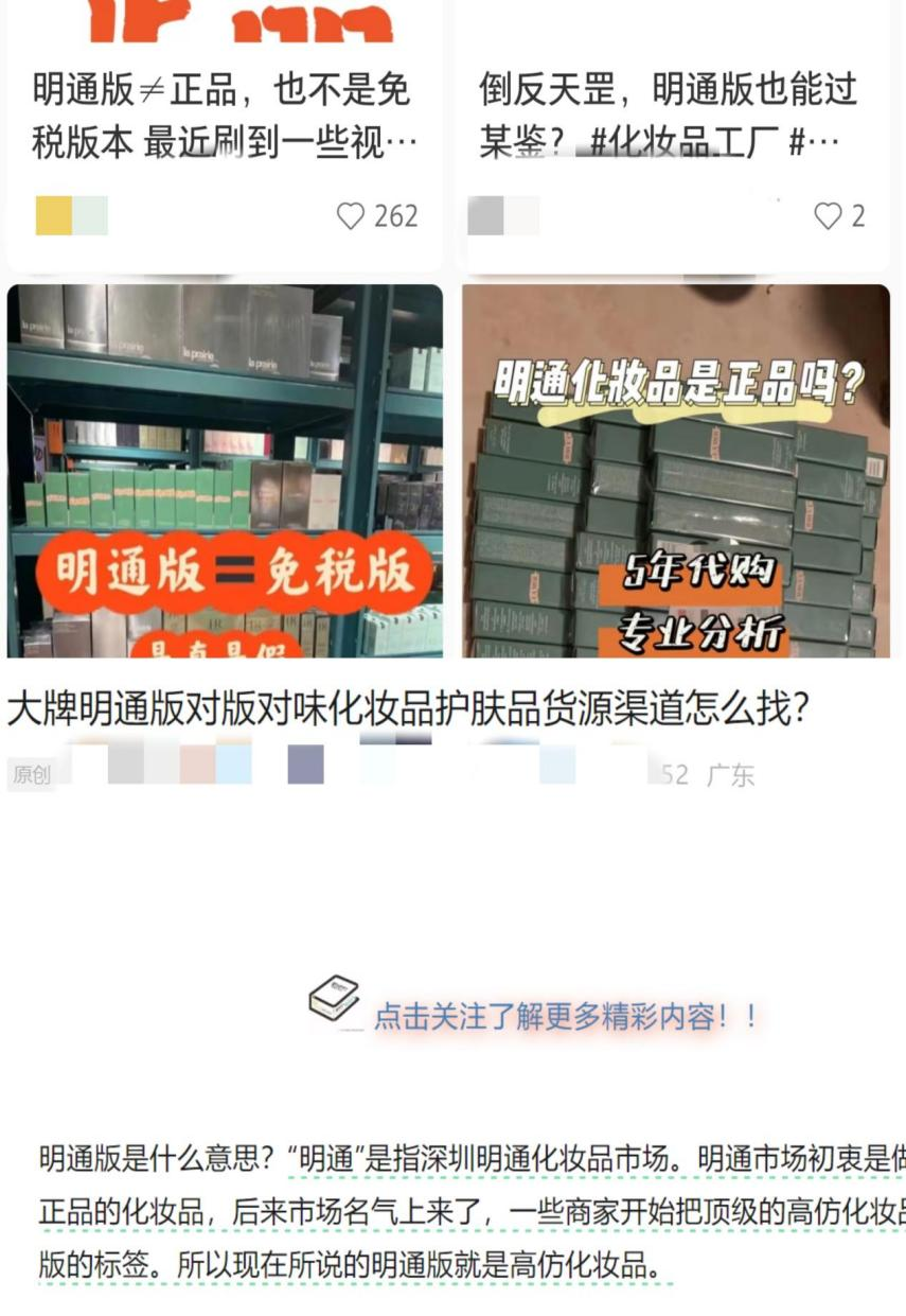 青眼调查发现,目前在各大社交平台上,仍有不少帖子提到深圳明通化妆品真假问题,甚至有多个帖子直接表示:“现在所说的明通版就是高仿化妆品。”