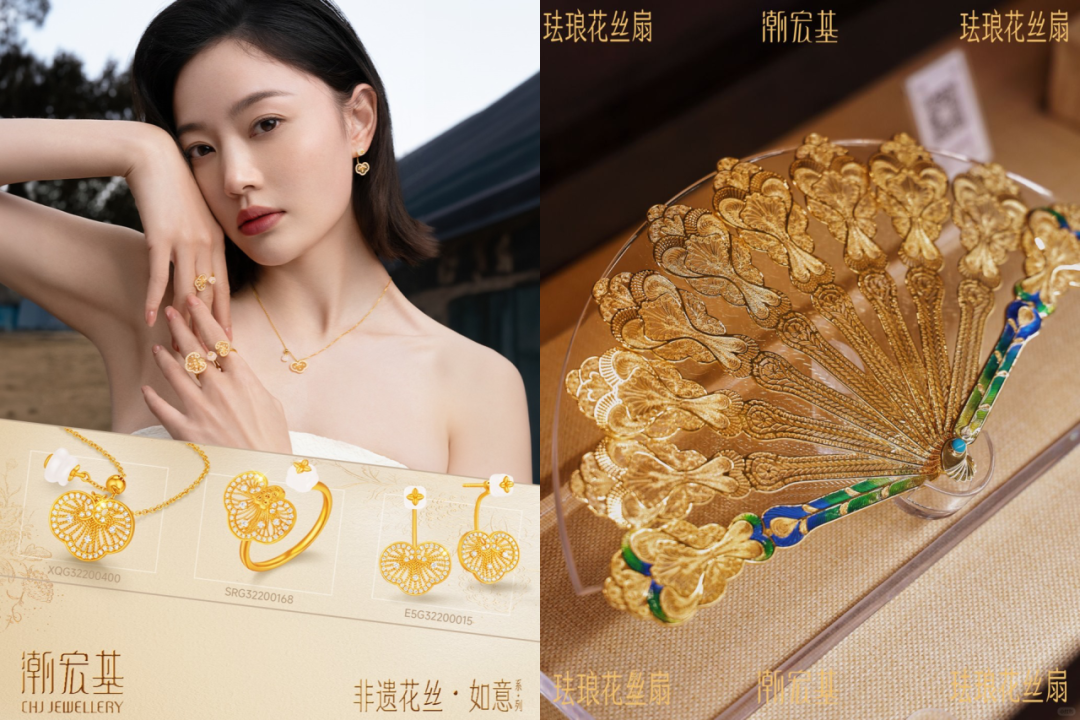 譬如,珠宝品牌潮宏基在以西方审美主导的 2008 年,提前布局非遗技艺花丝,花重金成立非遗工坊,寻找非遗传承人。耗时十余年,用非遗工艺花丝单独开辟一条产品线。