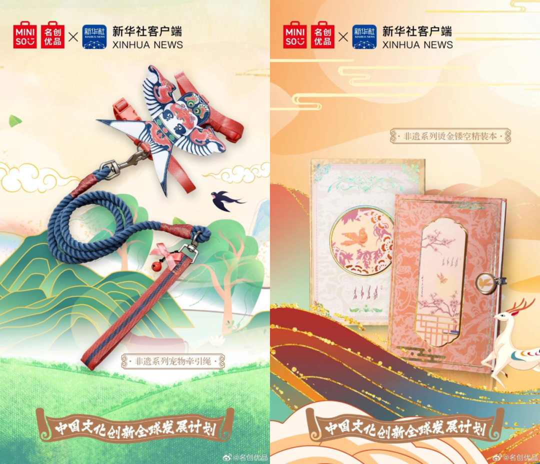 产品与非遗文化的结合度以及适销性问题决定了非遗联名产品在市场的受欢迎程度。简单来说,产品要能体现非遗文化特色的同时,也要让消费者愿意买单。比如,名创选择了“江永女书”“中国剪纸”“曹氏风筝”这三种非遗文化,考虑到消费者在日常生活中的使用程度,最终选择抓夹、宠物牵引绳、香薰、文具、纸扇等产品。