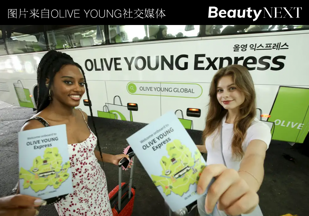 值得一提的是,Olive Young还曾推出首尔豪华巴士服务,将外国游客直接从仁川机场接送到明洞购物区。这种与旅游深度绑定的创新宣传方式,进一步巩固了Olive Young在线下市场的不可替代地位。