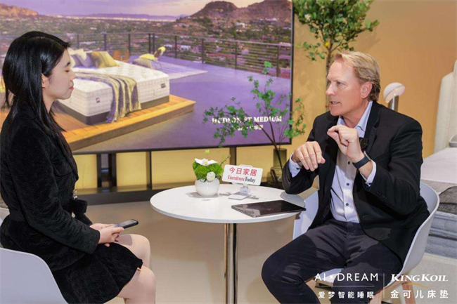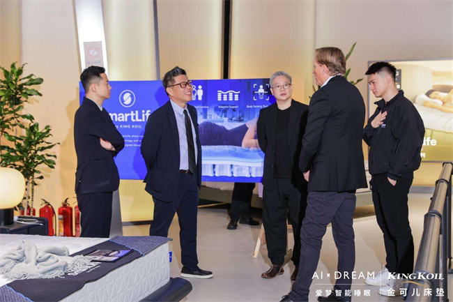 金可儿的创新,不仅体现在产品设计的每一个细节,更贯穿于品牌对市场趋势的深刻洞察与前瞻布局。展会首日,金可儿美国CMO DAVID LONG先生亲临现场,与金可儿中国总裁吴鄂先生、副总裁Becky女士及爱梦集团CMO冯宇飞先生展开深入交流。双方围绕全新进口系列的产品设计理念、市场定位及未来适配智能睡眠发展战略等议题,展开了热烈而富有成效的讨论。