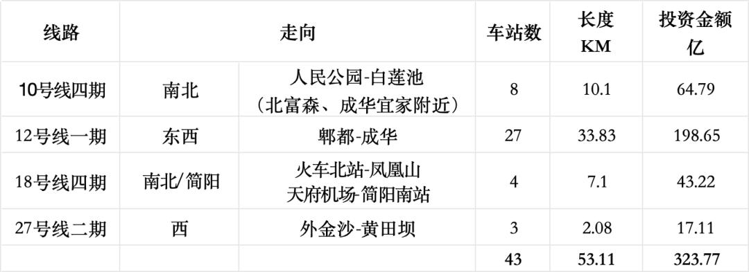 结合当前的信息来看,成都地铁第五期规划具体批复时间和具体包含多少条线路,尚无公开信息可查,但至少已有10号线四期、12号线、18号线四期和27号线二期4条线路“板上钉钉”。
