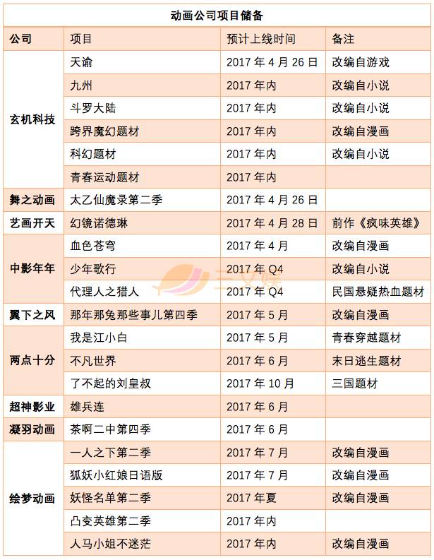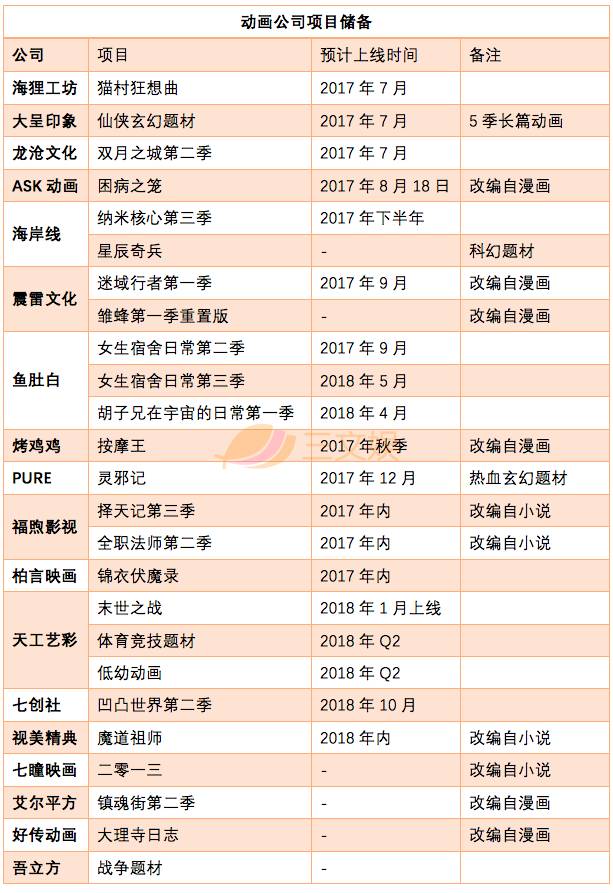 下表是三文娱统计的详细情况,还有许多保密阶段的动画未来也会陆续揭晓。