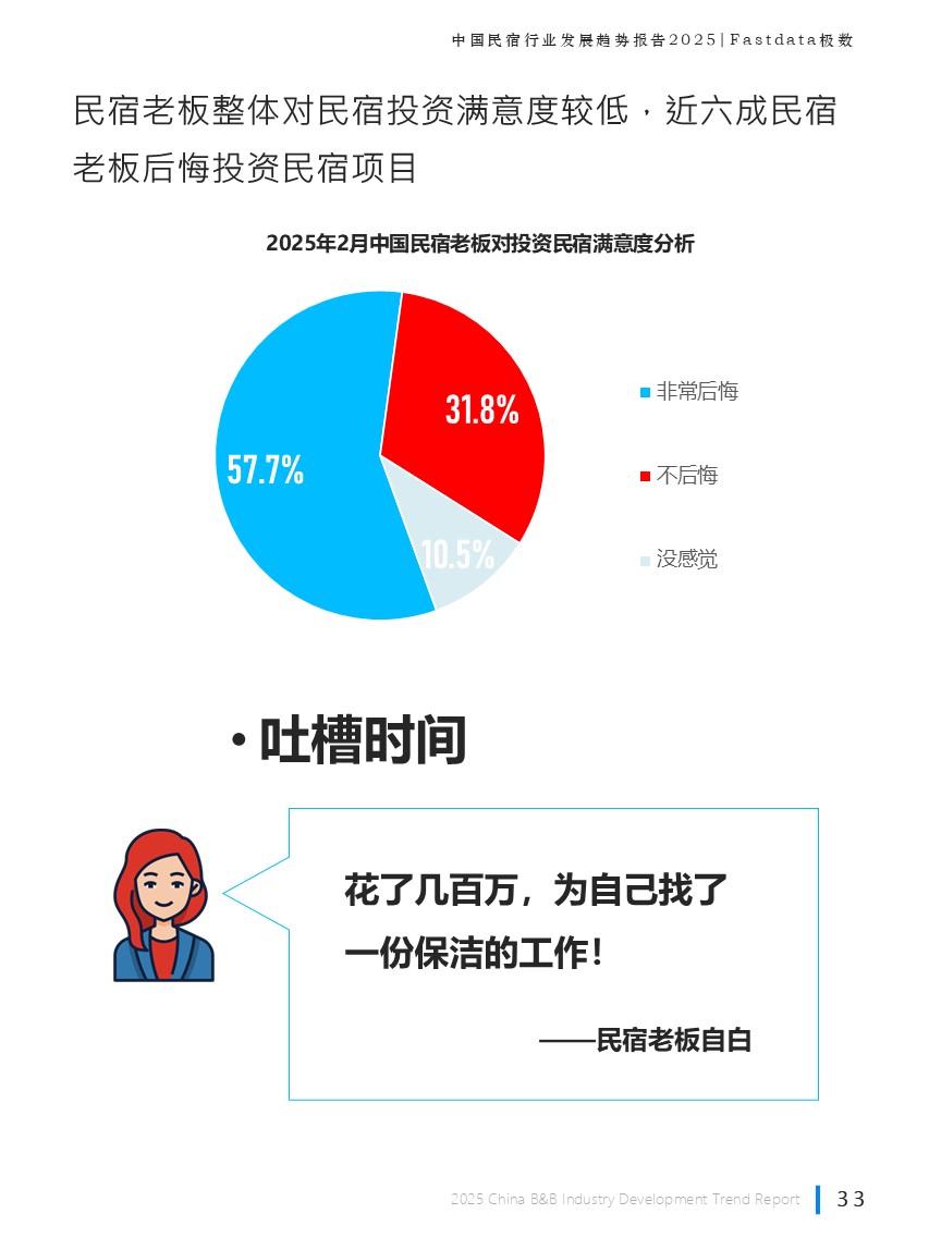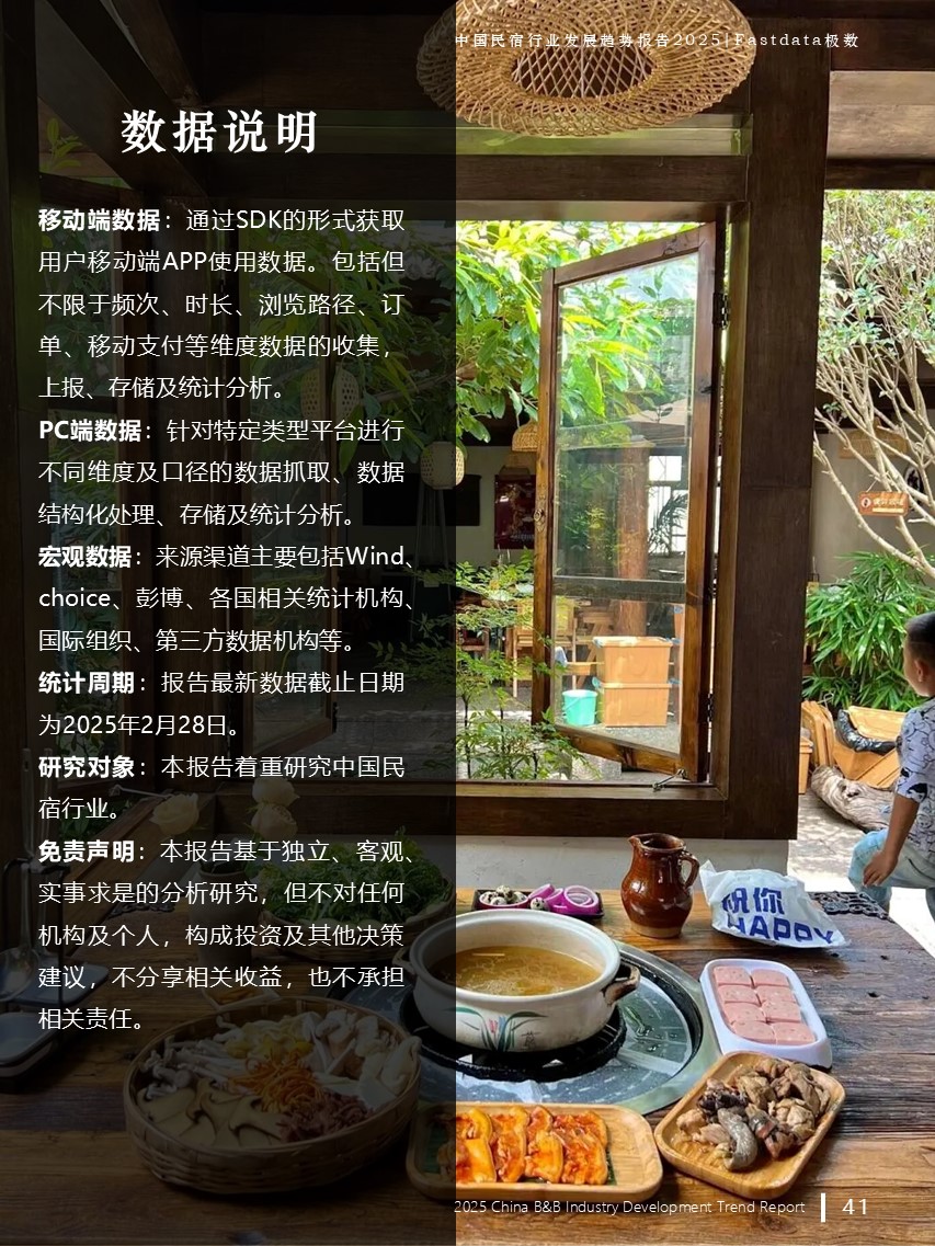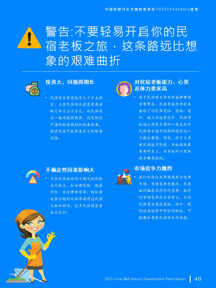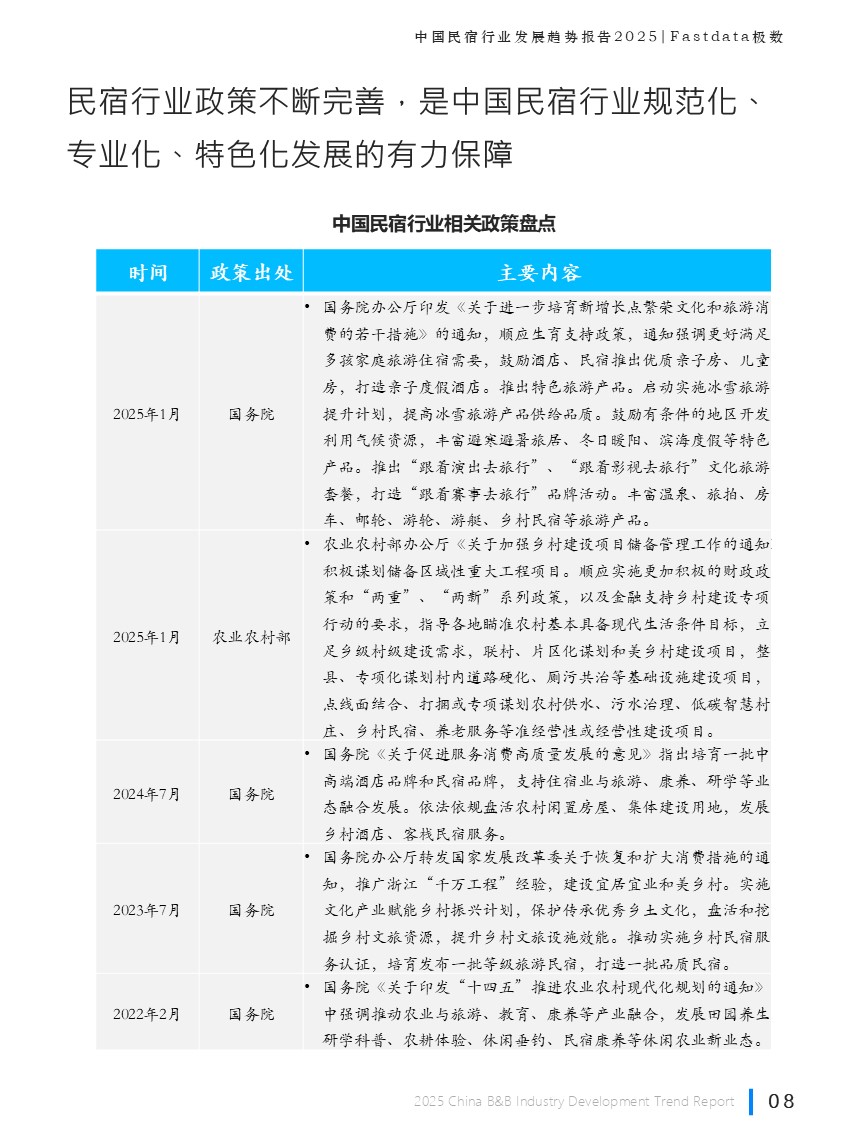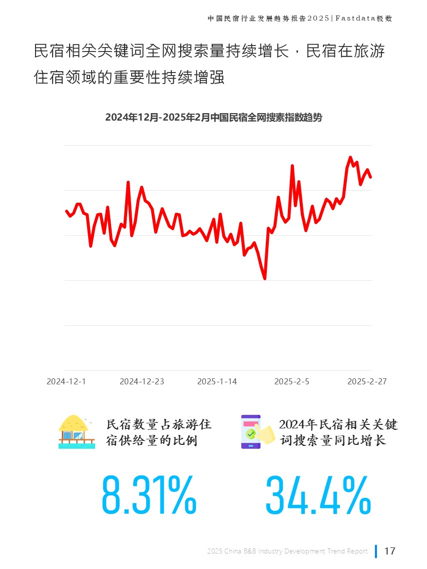 2025年民宿行业将迎来变革,一些明显的趋势已经形成,并正在影响着民宿行业各个运营主体的效益,例如旅行者对独一无二住宿体验的追求、对隐秘远离尘嚣度假需求的不断增长、宠物友好型旅行住宿需求的增加等等,旅行者们在用行动告诉民宿运营者,2025年中国民宿行业变革的大幕已经拉开,旅行者们正在用行动重新定义住宿体验。