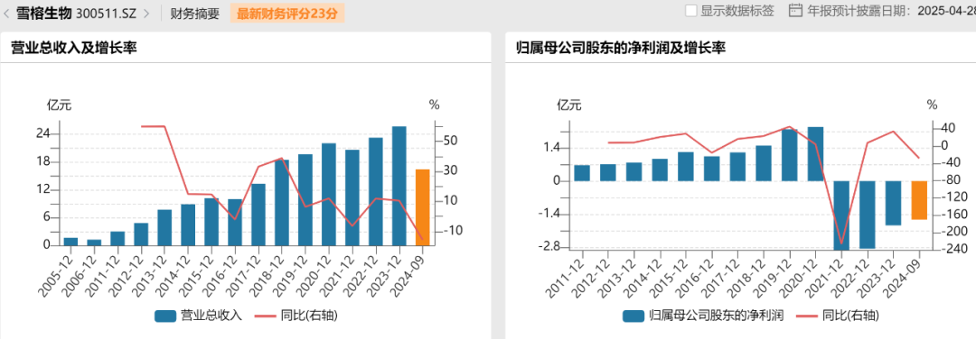 在此情况影响下,雪榕生物已连续亏损三年,且预计2024年全年亏损规模将同比扩大。