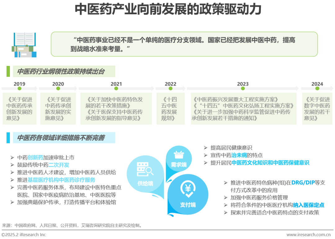 政府的宏观政策是推动中医药产业不断向前发展的核心驱动力
