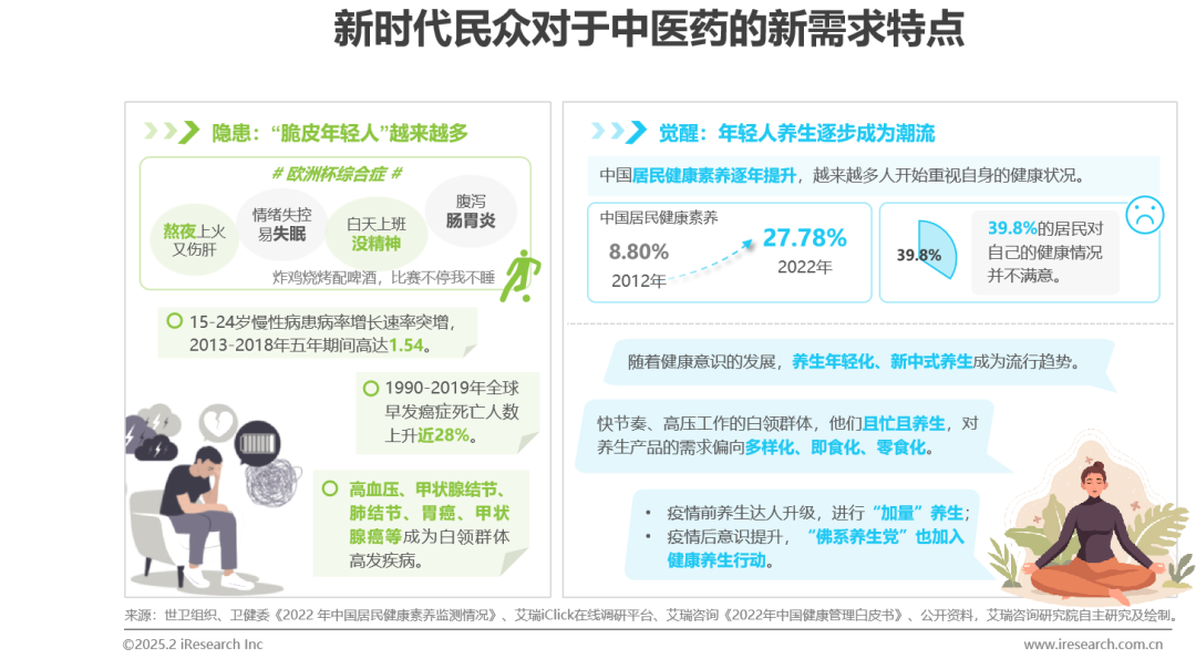 亚健康与疾病年轻化促使“脆皮年轻人”逐步推崇新中式养生