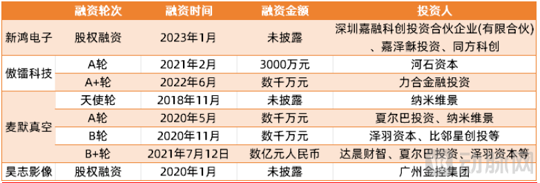 国内拥有医用冷阴极X射线源产线的相关企业融资情况(非完全统计)