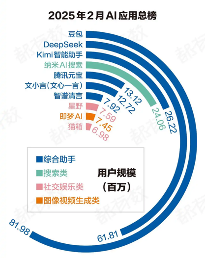 在国内,该赛道目前已跑出了两大头部星野与猫箱。它们不仅在赛道之内形成数据断层,也是为数不多能够打入AI应用综合榜单的。