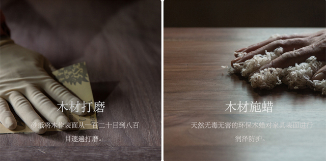 整把椅子选用黑胡桃木,具有非常好的稳定性,含水量低,不易开裂。在木器成型之后,没有使用化学漆,而是纯手工打磨施蜡。