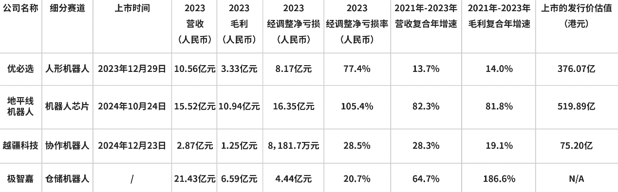 三家龙头企业的股价上涨既彰显了自身实力,也激发了市场对同类型企业的热情。仓储机器人龙头企业极智嘉于 2024 年 12 月递交港股上市申请,估值150 亿人民币,其增长潜力受市场高度关注。