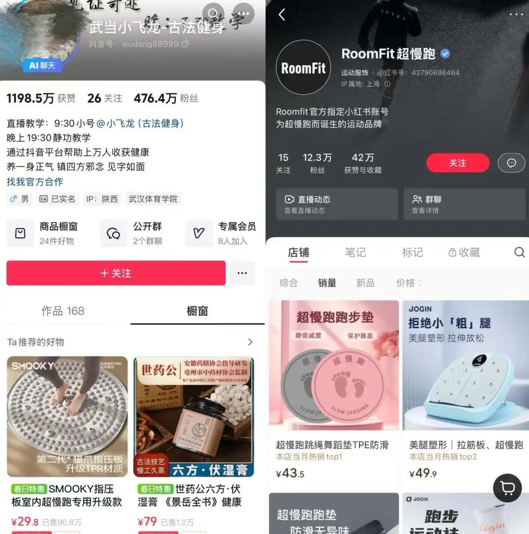 图:社交平台上关于“超慢跑”的带货数据来源:抖音(左),小红书(右) 《听筒Tech》截图