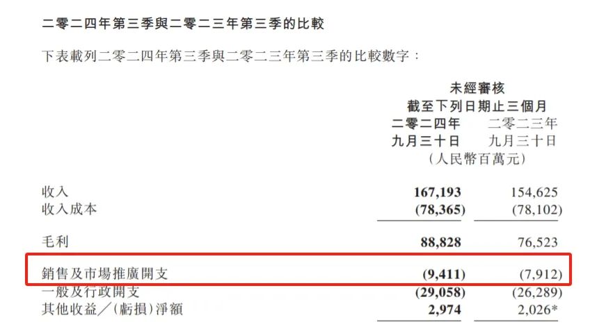 腾讯也足够“养得起”虎牙的游戏服务业务。按照腾讯财报,2024年三季度,腾讯的销售费用为94.1亿元,相当于B站一年的广告收入。作为国内最大的C端互联网公司,腾讯内部有着太多需要“买量”的产品,比如新游戏的宣发,老游戏的新活动。