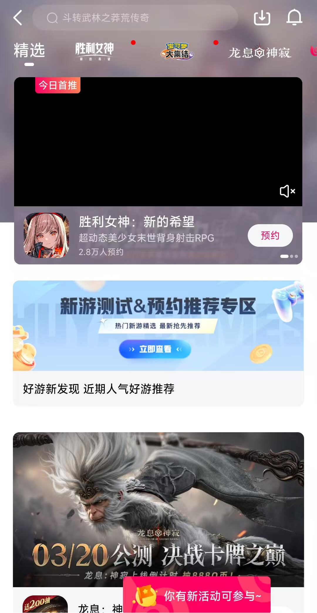 图:虎牙的游戏服务页面,就是一个内置的应用商店