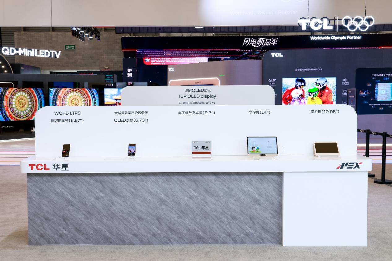 TCL华星则重点展出印刷OLED显示器、量产印刷OLED专业显示屏、OLED手机屏、OLED笔电屏、HVA电视屏等产品,涵盖从5.5吋到150吋等大中小全尺寸。其中27吋4K 120Hz印刷OLED显示器、21.6吋TCL华星首款量产印刷OLED 4K专业显示屏、6.73吋全球首款量产分区分频OLED屏、14吋全球首款屏下摄像OLED笔电屏、149吋MLCD星际皓影屏、98吋HVA Pro高画质电视屏均一一亮相。