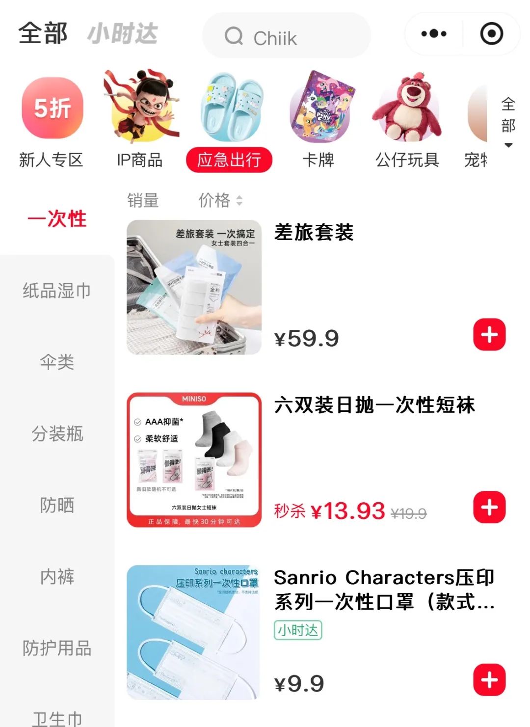 名创优品也是直观的例证,据了解,24 小时超级店定位为 “大刚需 + 小 IP”,重点开发一次性浴巾、内裤等应急单品,并布局出行、清洁百货、数码配件等场景。品牌负责人还透露,未来和常规店商品差异率会达 70 %。