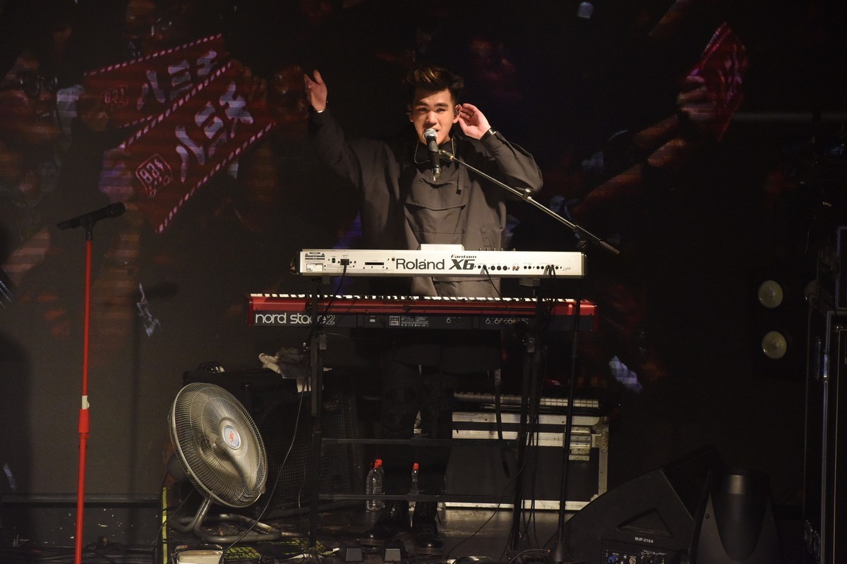 一支乐队,五个人同台演出,必要的默契肯定要有的,阿电除了打鼓,还负责现场的合成器,他是一场演出的背后主导者,从开始不够默契,到现在阿电和阿璞只要一个眼神,就知道该什么时候换歌。