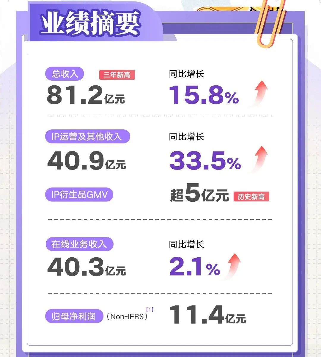 而在强大IP资源的助力下,乘着近年“谷子经济”“卡牌经济”“联名经济”的东风,阅文的IP商业化业务也在过去一年取得重大突破。