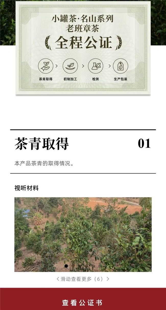 小罐茶的“敢保真”战略中,基于信息的真实性保障,消费者不用再为茶叶“交学费”,通过扫描产品上的公证二维码,不仅能查看产品的原料来源、生产加工情况、检验报告等公证信息及公证书,还能通过视听材料,生动地了解各个生产加工环节的相关信息。这让“品质”不再是营销话术和噱头,而是真正成为了消费者看得见、可验证的证据。
