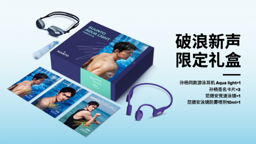 Suunto Aqua Light 于 3 月 20 日已于各大平台上线,售价1199元,更有多重新品福利。更惊喜的是,SUUNTO 颂拓联合代言人孙杨共同推出「破浪新声」限量联名礼盒,内含孙杨签名款游泳耳机 Suunto Aqua Light 、孙杨签名卡片3张、范德安竞速泳镜以及10ml的范德安泳镜防雾喷剂,加量不加价,限量1000套现已开售,售完即止。现在打开SUUNTO颂拓京东、天猫等平台,和孙杨一起开启音乐随行的游泳之旅,澎湃动力,泳往直前!