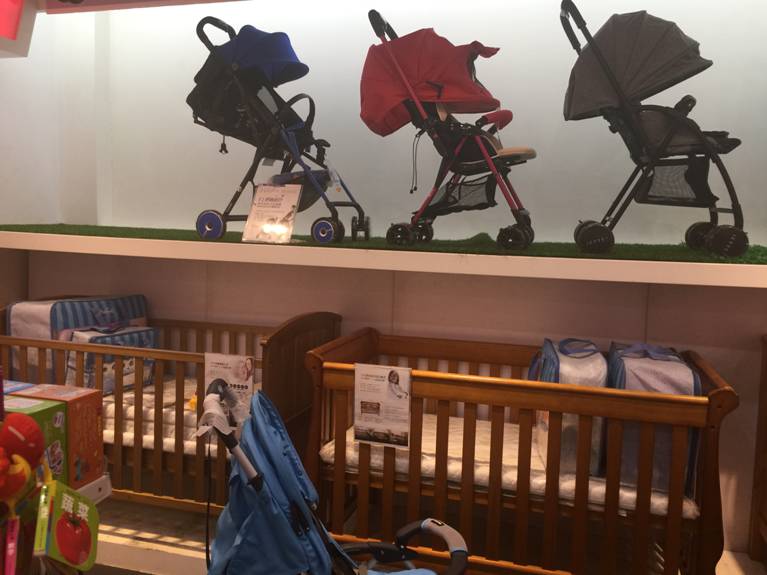 店内空间利用的很好,把宝宝在家的床和出门的“床”结合到一起,既有场景感,又可以充分利用空间,留出更多的位置给顾客。