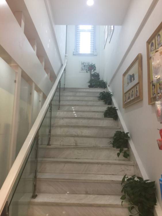 三楼是儿童摄影,楼梯墙上悬挂的照片,让顾客可以边走边看,也是吸引顾客上楼的一种方式。楼梯口巧妙的运用玻璃窗采光,让楼梯口本是阴暗一些的地方顿时明亮起来,让顾客有想要上楼去看看的欲望。