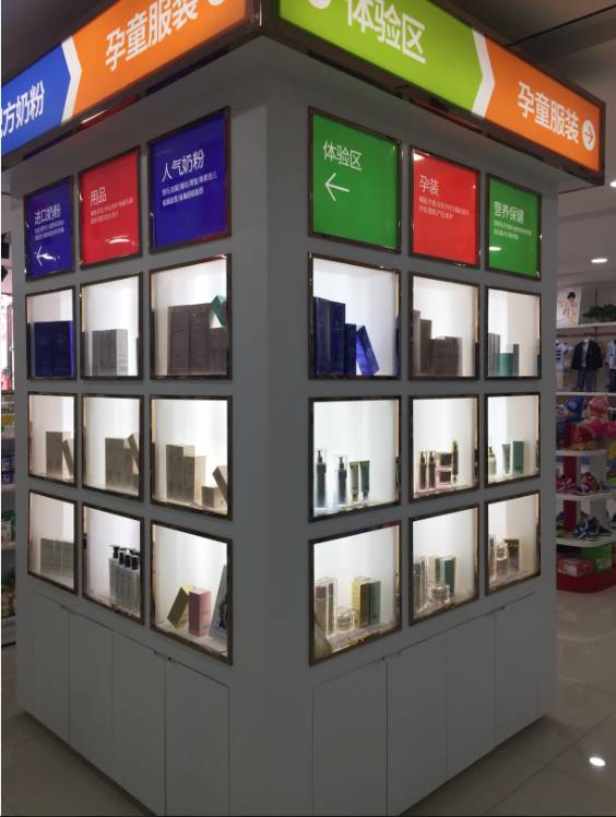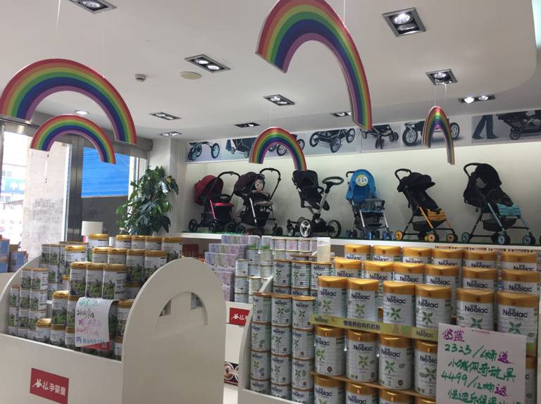 最后放一张我很喜欢的场景,这是谷根太钢店,奶粉都分区展示,灯光打在小彩虹上温馨感十足~