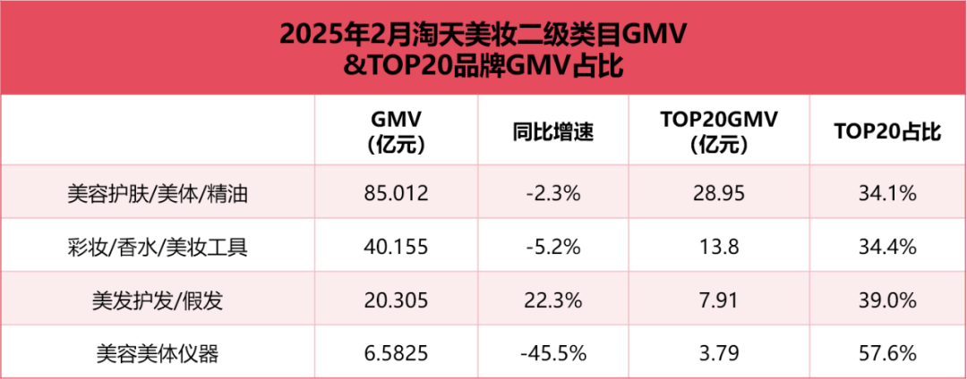 以淘系最核心类目美妆为例,瓶颈依然未被打破。据《化妆品观察》报道,2月份,淘天美妆GMV为152.05亿元,环比下滑7.25%,同比下滑3.8%。