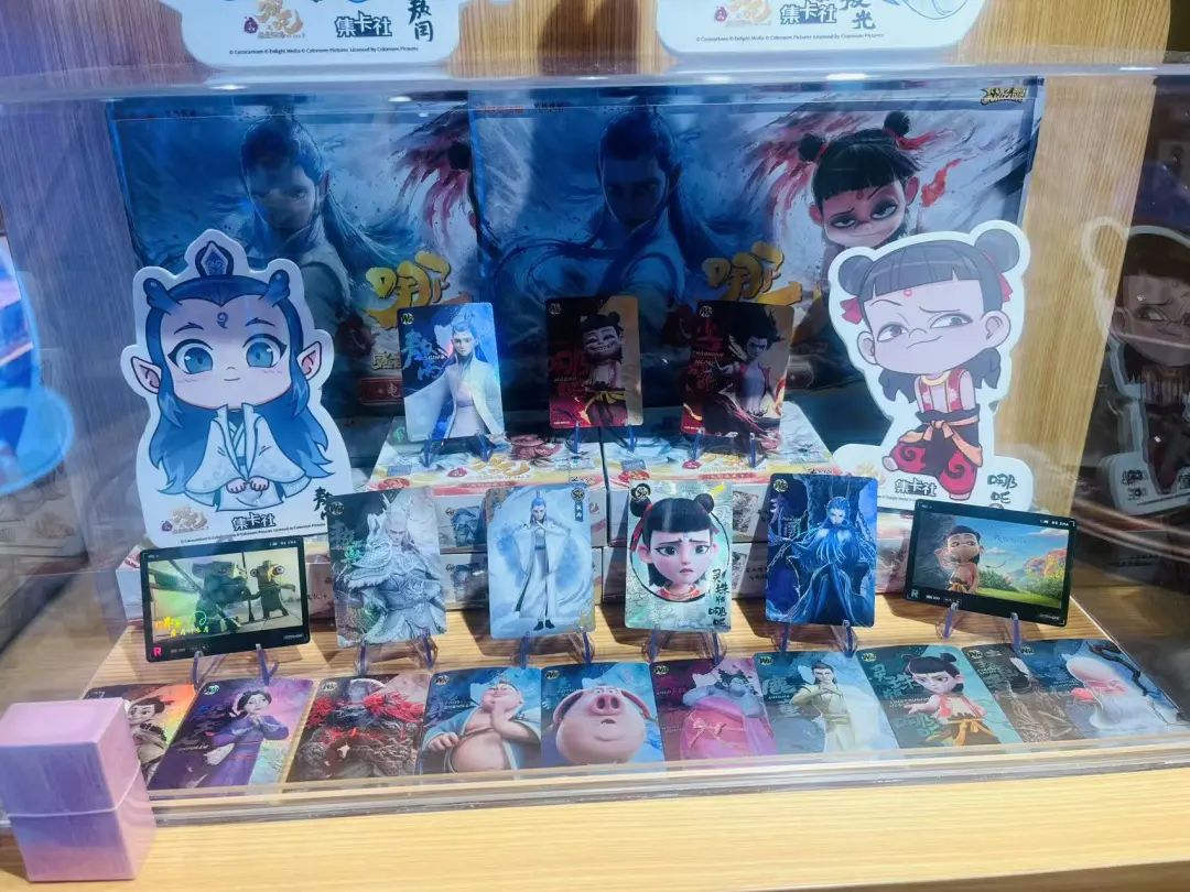 据略大参考观察,相比于一般的门店,该门店面积更大,并专门设有宠物专区,以及更多的IP联名玩偶和盲盒。作为黑神话官方衍生品全球线下独家发售渠道,其IP产品占据门店C位,一进门就可见。此外,在一楼区域,该门店围绕产品特别设置了二次元专区、盲盒玩偶和卡游专区,最近爆火的哪吒卡游被放置在盲盒区域最显眼位置。