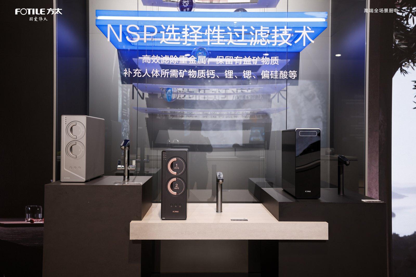 其中,净饮机部分搭载NSP选择性过滤技术4.0,可高效滤除重金属,配合七重净化科技,去除重金属的同时, 还可滤除细菌病毒、泥沙杂质、悬浮物、抗生素等7大类型100种有害物,同时保留有益矿物质,确保水质洁净健康。2022年方太NSP选择性过滤技术获浙江省科学技术进步奖一等奖,是5年内首个获此殊荣的净水品牌。2023年经中国轻工业联合会鉴定委员会评定,方太净水项目整体技术达“国际领先水平”。