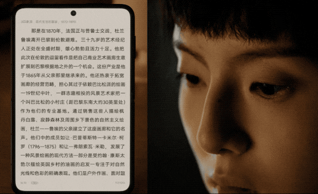 剁椒Spicy体验后发现,由于屏幕更宽,华为Pura X看小说的时候,每行可以容纳更多文字,阅读沉浸感更强。并且华为阅读App还为华为Pura X带来了AI眼动翻页的功能,开启该功能后,眼睛看到小说的最后一行,屏幕下方会出现“向上看,翻下一页”的字样,眼睛看向第一行,手机即可自动完成翻页。