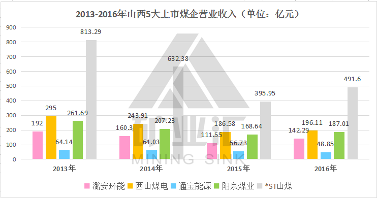 从营业收入分析,山煤国际2016年营收为491.6亿元,领跑其他煤企,而纵观近几年的企业营收数据可知,*ST山煤亦为五家煤企之首,最高时其营收为其他企业的12.7倍!