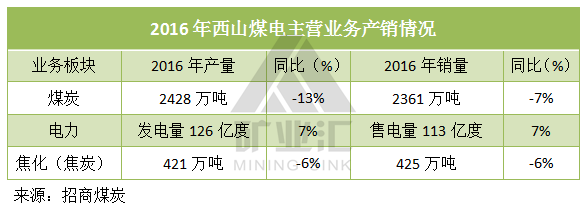 2016年的采掘业板块原煤产量3915万吨,创历年新高,商品煤产量3520万吨,较上年基本持平,而煤炭综合售价也同比增长8%达到341元/吨。