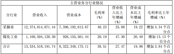 潞安环能的主营业务为煤炭采掘业和煤化工业两项。