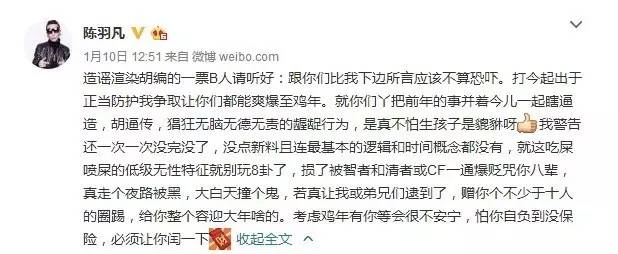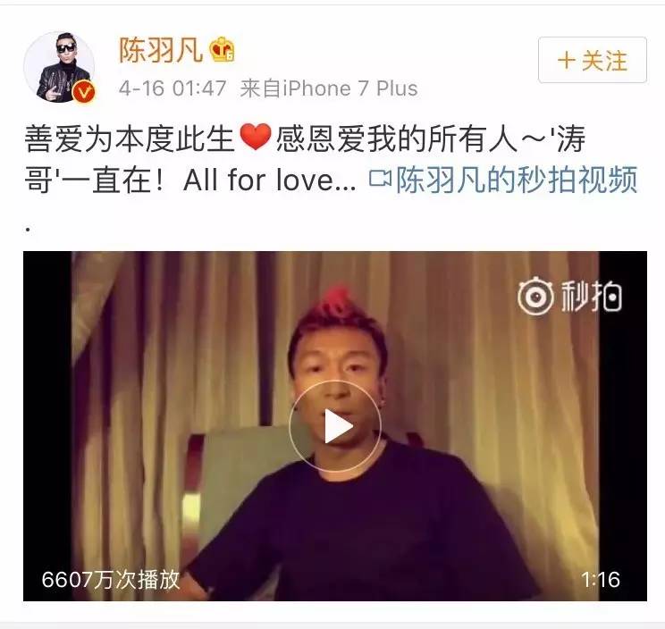 陈羽凡在今天凌晨微博小视频里说,开篇第一句是,对家事占用那么多的公共媒体资源表示道歉。
