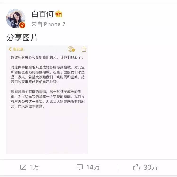 白百何随后也扔出声明说,是啊,都是为了孩子。