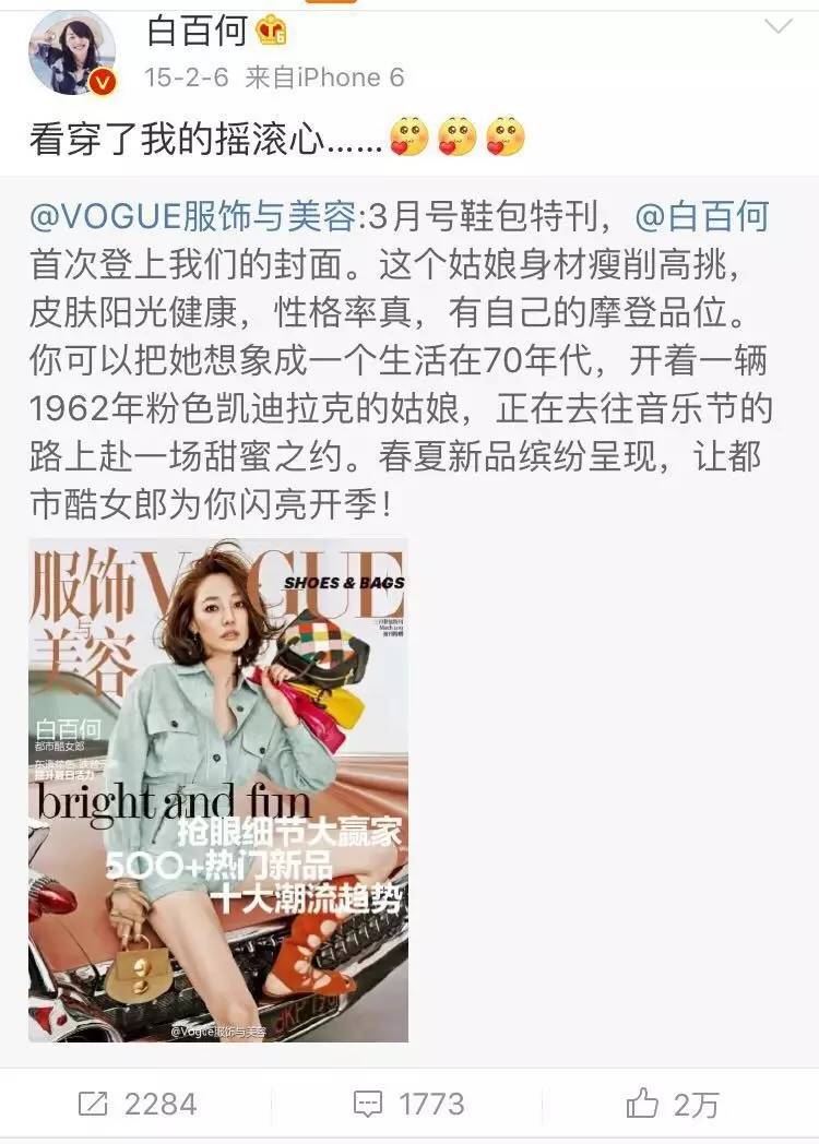 2015年白百何拍VOGUE封面,港真,换成其他一线女星,谁能这么有底气地说,自己有一颗摇滚心啊?