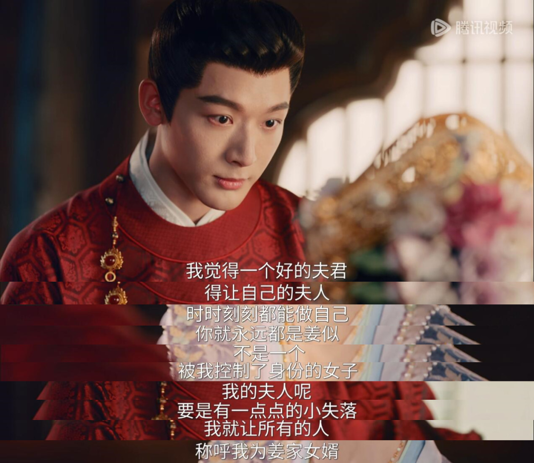 比如正在热播的西嘻影业出品宅斗剧《似锦》中,男主郁锦在迎娶女主姜似后疯狂输出“男德教条”,让姜似不必“做谁的夫人”而永远都做姜似,男主一届皇子反倒乐意抹去姓名成为“姜家女婿”。