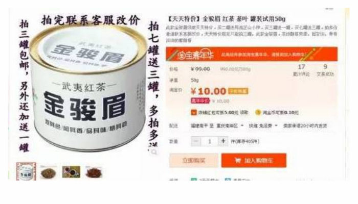 如今,金骏眉已经成为了高端红茶的代名词,但随着金骏眉的名气越来越大,市场上的假货也是越来越多。比如类似下图这种10元/50g的“金骏眉”在电商平台上大行其道,这样的茶,你敢喝吗?那么我们该如何选购金骏眉呢?这里教你两招。