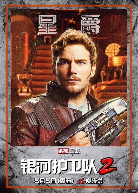“ 星爵”彼得·奎尔由克里斯·帕拉特饰演,是一名地球人,担任银河护卫队的队长。