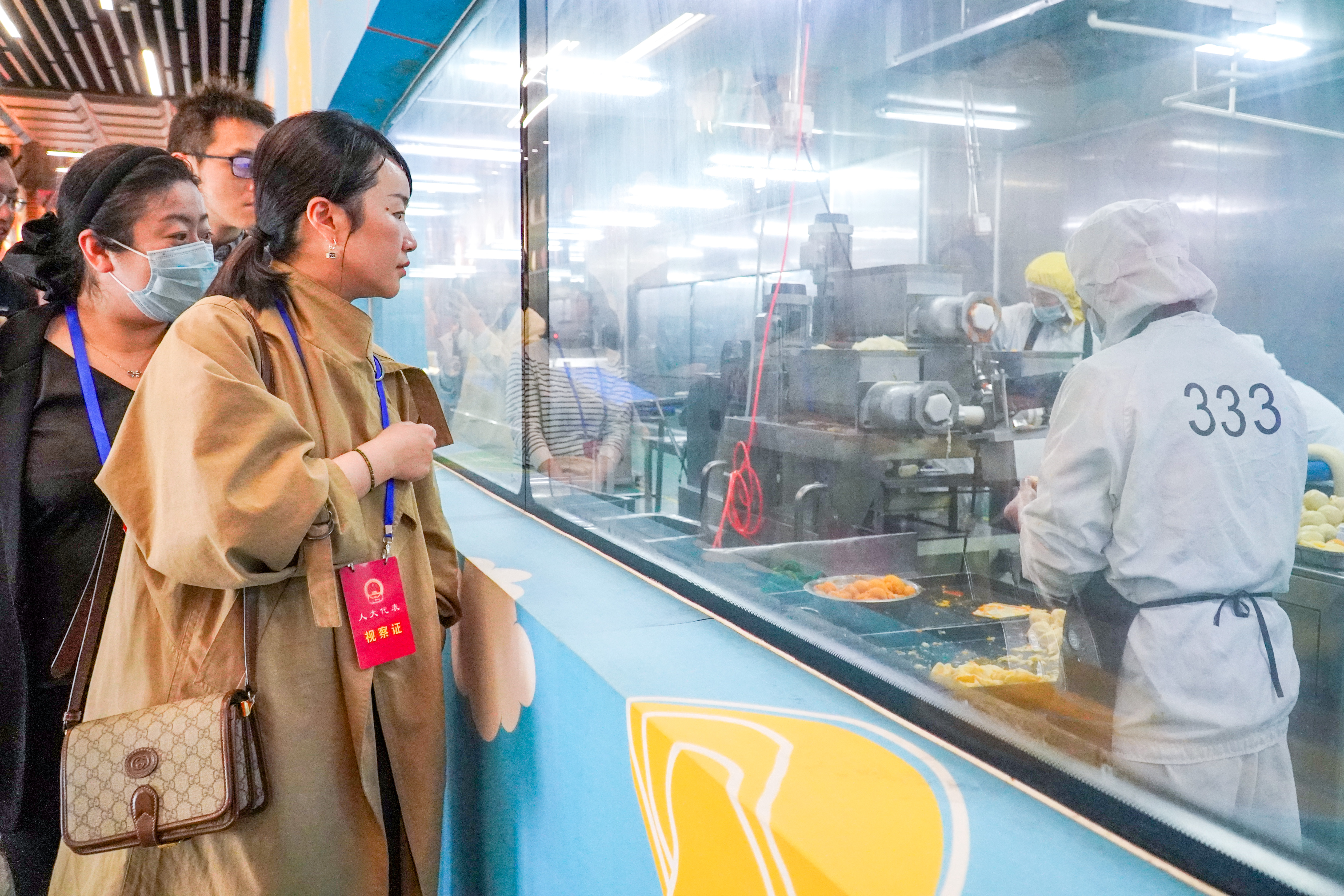 车间里,各类糕点从制作机器里有序送出;车间外,区人大代表、宁波银行湖东支行行长王敏敏拿起手机记录智能车间的生产场景,她说:“在这里我看到了一个传统食品加工企业的未来之路。我认为,企业可以进一步利用AI等智能技术,在月饼、粽子等食品中加入罗城文化元素,把它们传递到每一个家庭,甚至传递到海外。”
