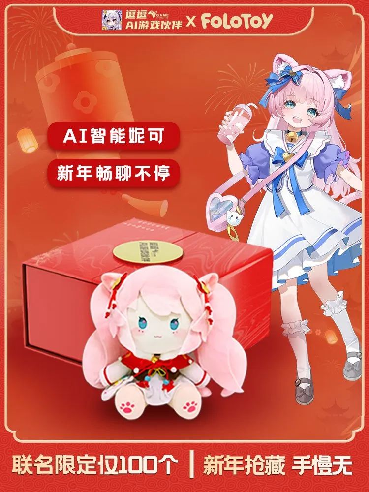 FOLOTOY正在推进AI插件与不同类型的IP进行联名,以期找到合适的商业路径。今年1月,逗逗AI游戏伙伴妮可与FOLOTOY联名版玩偶正式上架,限量100个。AI智能妮可内置的,正是魔匣AI智能对话机芯。