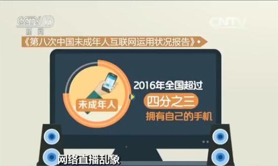 据2016年中国少先队事业发展中心等单位发布的《第八次中国未成年人互联网运用状况调查报告》调查显示,去年,全国超过四分之三的未成年人拥有自己的手机,其中近九成使用过手机上网,未成年人通过注册自己的社交账号,在各类平台中接触色情信息遭受精神和财产损失的案例也开始层出不穷,色情直播内容正严重毒害着未成年人的身心健康。