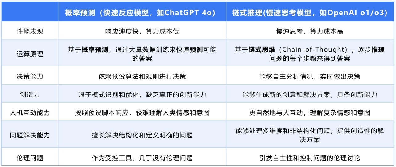 在AI推理方面,一个重要趋势正在浮现——慢速深度推理。与强调实时响应的快速推理不同,慢速深度推理聚焦于更为复杂、需要多步逻辑链条的任务,力求在知识复杂度和推理深度上实现突破。