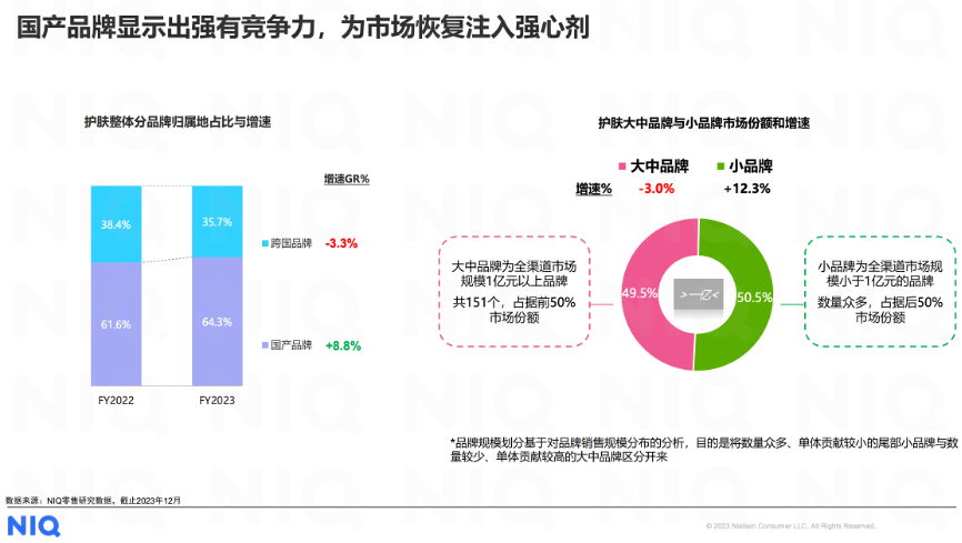尼尔森IQ的数据也显示,早在2023年,国产品牌就已经占据了六成以上的护肤品市场份额,销售额同比上涨了8.8%,而跨国品牌的销售额则呈现出小幅收缩的态势。
