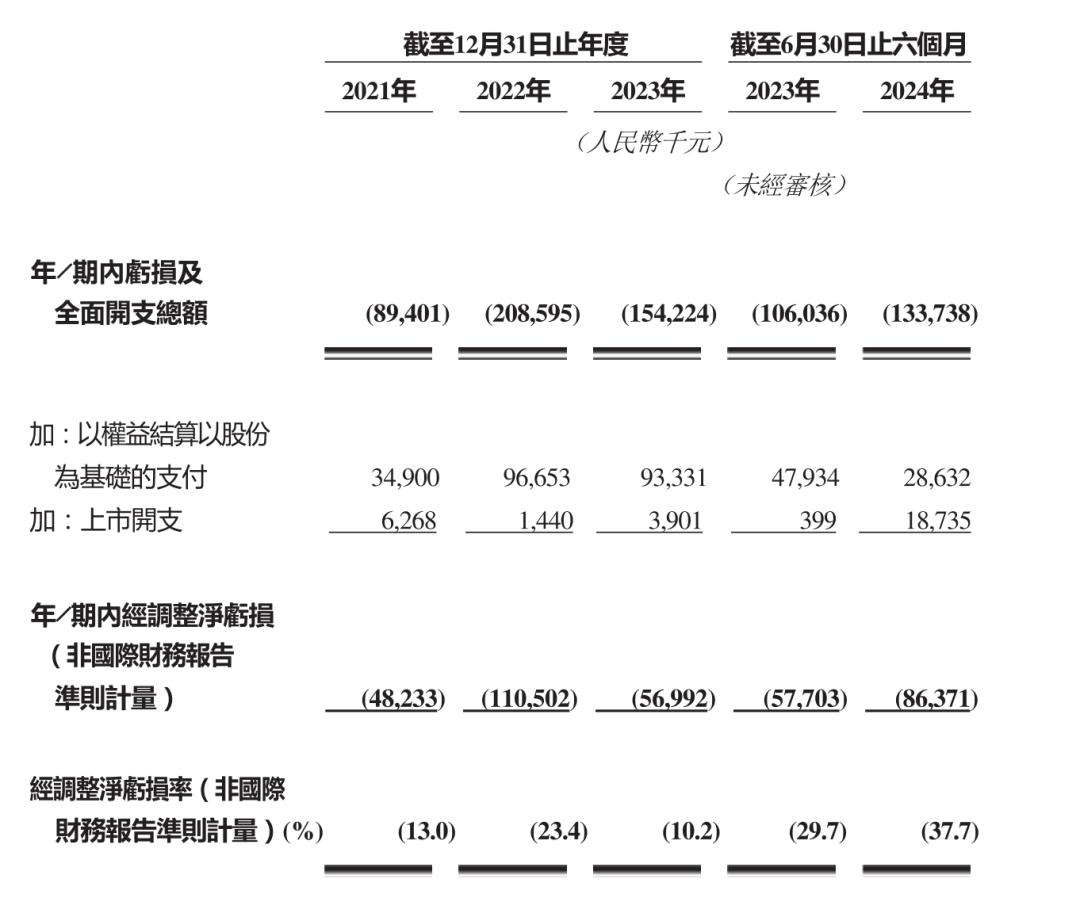 从当下来看,AI+医疗也不是一块好啃的骨头。在这个领域,科大讯飞旗下的讯飞医疗已经做了八年,虽然营收在逐年增长,但整体业务仍然处于亏损状态。讯飞医疗招股书显示,讯飞医疗在2021年至2024年上半年的营业收入分别为人民币3.72亿、4.72亿、5.56亿和 2.29亿元,但其净亏损分别为人民币0.89亿、2.09亿、1.54亿和1.34亿元,其营收完全不够覆盖高额的研发成本。