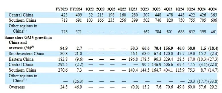 店业绩出现了全国性下滑,同店交易额同比下滑18.4%。