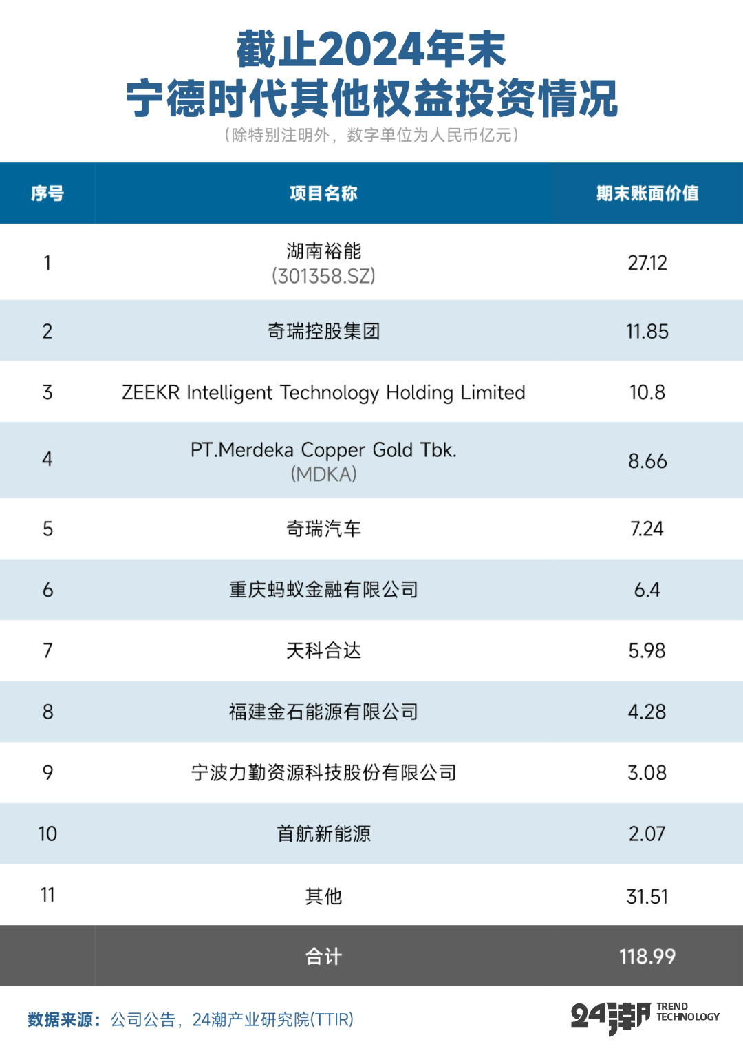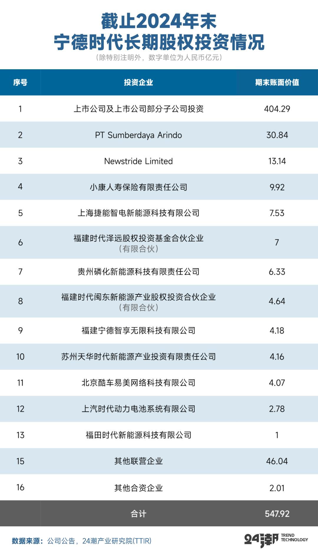 24潮团队分析发现,宁德时代资本触手已延伸至锂矿、磷酸铁锂、锂电池生产设备、镍矿资源、汽车芯片、锂电池回收等新能源汽车核心产业链,甚至对金融产业也有所深度布局,其所投资企业大多处于行业龙头,或领先地位,总投资合计超660亿元。