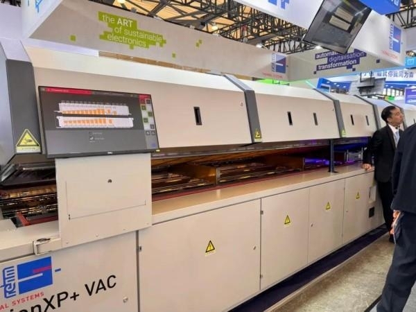 HELLER在展台上展示了新品SCVR高速真空炉,据了解其核心优势包括是采用HELLER独家专利的多段式轨道设计和高效真空回流技术,显著提升生产效率,能在极短时间内实现均匀加热与精准控温,满足高产能需求。同时,SCVR注重环保,通过节能设计和环保工艺大幅降低能耗与碳排放,契合绿色制造趋势。模块化结构支持快速维护与升级,保障生产线稳定运行。
