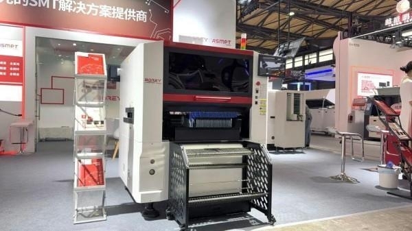 博瑞先进展示了全自动多功能贴片机 XJ10 ,其采用一体式铸造结构,经有限元辅助设计和退火工艺处理,重要配合面变形量控制在 0.01mm 以内,保障了设备的高稳定性。X/Y 轴运用业内先进的直线电机驱动,实现全闭环控制,贴片精度达 ±0.05mm(XY),CPK≥1.0,确保高精度贴装。定制化直线电机驱动系统搭配专利设计的 X - beam,减少了 X - Y Gantry 行走的整定时间,进一步提升了设备精度和性能稳定性。该贴片机的贴装头高速轻量化,无需更换即可贴装0201微小型元件到 40*40mm、高度 10mm 的大型元件,适用范围广,且拆装维护便捷。自动吸嘴站支持无需停机切换吸嘴,提高了生产效率。新型飞行相机配超薄棱镜,可在高速贴装中识别校正 5mm 以下微小元件,识别精度 CPK≥1.0,还能有效规避吸嘴对相机的损坏。